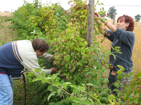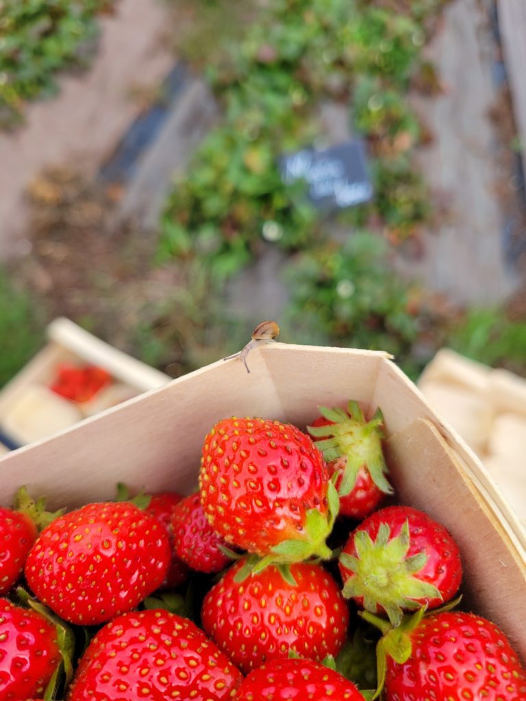 A partir de 2008, une nouvelle parcelle est créée à la ferme, afin d’être ouverte au public : la fameuse « vente à cueillir » ou « libre-cueillette« . En 2013, Florence rejoint la ferme. Elle devient confiturière en cheffe ! Depuis ce moment là, c’est grâce à sa magie que confitures, gelées, coulis, vinaigres et jus prennent vie. Elle est un pilier de l’équipe et les saisonnier.es sont toujours content.es de passer un moment avec elle au « labo de transfo ».